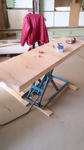 この作業台を使ってる頃から職場に油圧リフターが遊んでるのを知っていて、テーブル面を拡大すればバイク載せられるかも?なんて思っていたんですが、油圧ポンプが3相200vだったので自宅では使用できず残念な思いをしていました。
