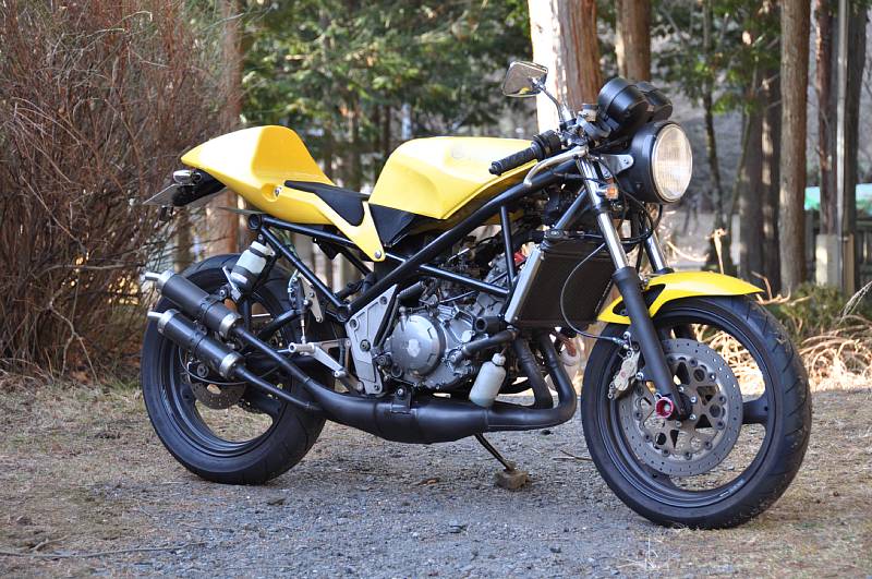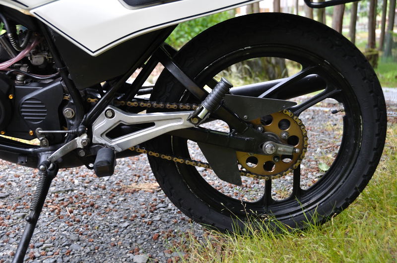 | まるでレトロコンプリートのような団長号♪ レトロって言っても古いって意味じゃなくて、レトロってショップの名前ねw 輪切り溶接跡も美しいステンチャンバーと、R1-Z専用品となるアルミスイングアームが良いね~♪ 余談ですが、オイラや友人☆も過去にレトロステンチャンバー装着してました。 なかなか乗りやすいチャンバーです(*^.^*) フォークも後方排気TZRからの流用とすることで、ホイールサイズも3.0にワイド化。 ちなみにスイングアームはワイドホイール対応で、団長号も3XVのリアホイール流用で4.5にワイド化。 妻子持ちの団長は仕事や家庭が忙しいようでほとんど乗ってません。 なので動態保存しておいてってことでウチで預かってるんだけど、やっぱ自分のバイクが一番カワイイじゃん? つーことで寝かせっぱなし(^-^; たまにはエンジンかけてやらないとな。。。 |