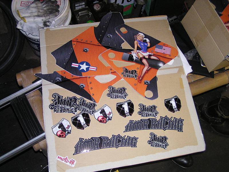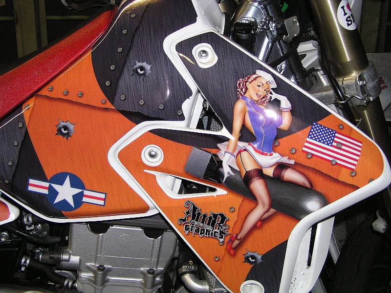 モト禅取り扱いの、AMR グラフィックデカール(シュラウド) デザイン:Tボマーです! オイラは予算の関係(涙)でシュラウドキットにしたけど、フォークガードやリアフェンダーなんかのデカールも含めたフルキットなんてのもあります。 豊富なデザインにカラーも数種から選べるので、迷う楽しみもヽ(*^^*)ノ ただ、納期は覚悟したほうが。 オイラも一月半くらい待ちました。。。 |