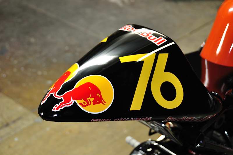 そしていろいろ考えていた際に見たF1のデザインを参考に、お尻にも牛を配置。 |