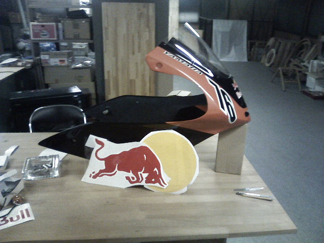 外装のマイナーチェンジに取り掛かってます。 いや、ほんっと~にちょっとだけですけど(^-^; 左右のレッドブルを6割くらい大きくしてみました。 ウチのステカは一番小さいモデルなので、最大160mm幅しか抜けません。 今回抜いたのは月の外径で250mmあるため、分割カットしてるから面倒くさいったらありゃしない・・・