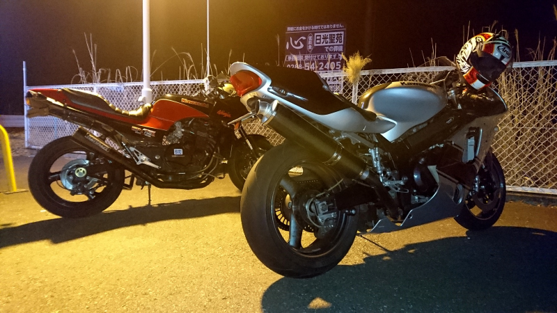 帰宅後軽くメンテしてたら、今日仕事だった友人(ニンジャ乗り)が終業後の散歩(バイクで)してるという。