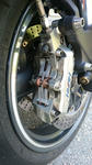 音が出るのは左だけだし、ブレーキ掛けると若干ジャダーが出るのでひょっとするとディスクにゆがみが出てるのかなぁ。