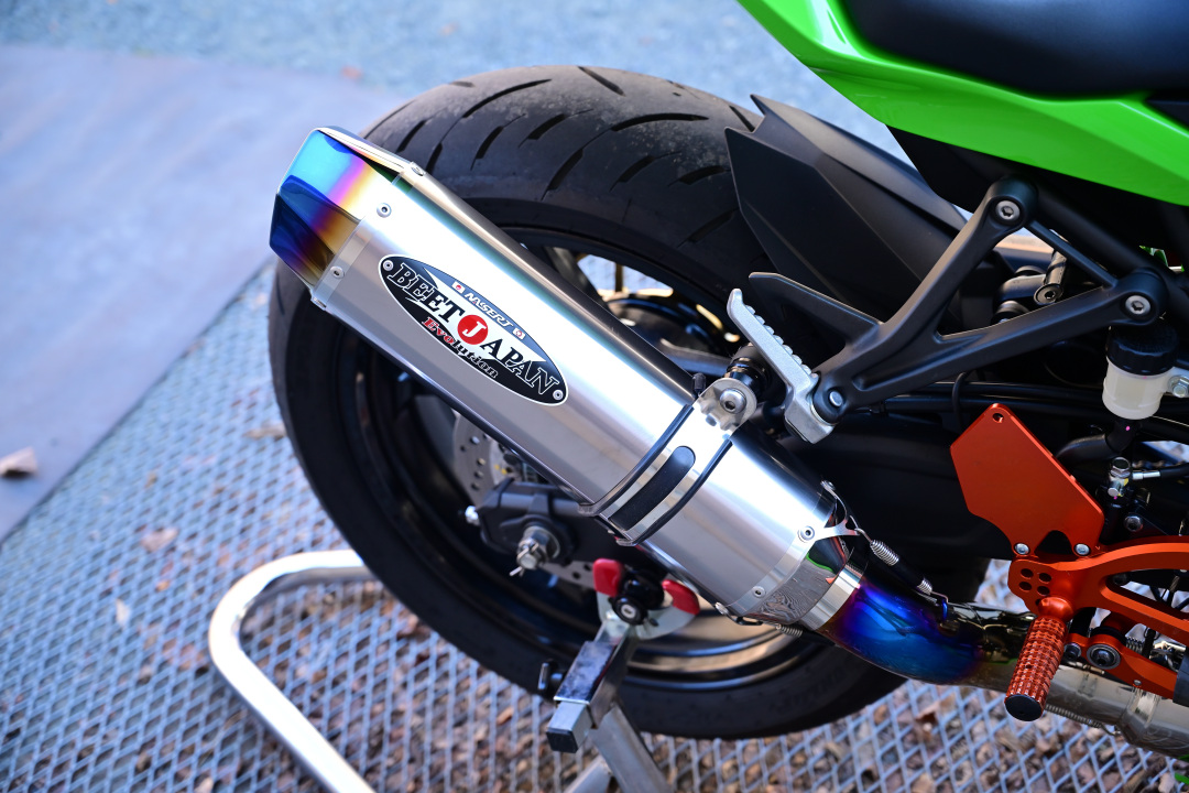 純正マフラーに特別不満はなかったので変える気はなかったのだけど、サブラジエターをつけるためにやむを得ずフルエキもセットで購入。