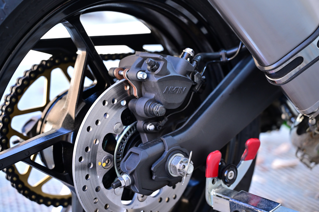 先日チェーンの余分なオイルを飛ばそうとレーシングスタンドでリアを浮かせてエンジンをかけ、ギア入れてタイヤ回していた時のこと。