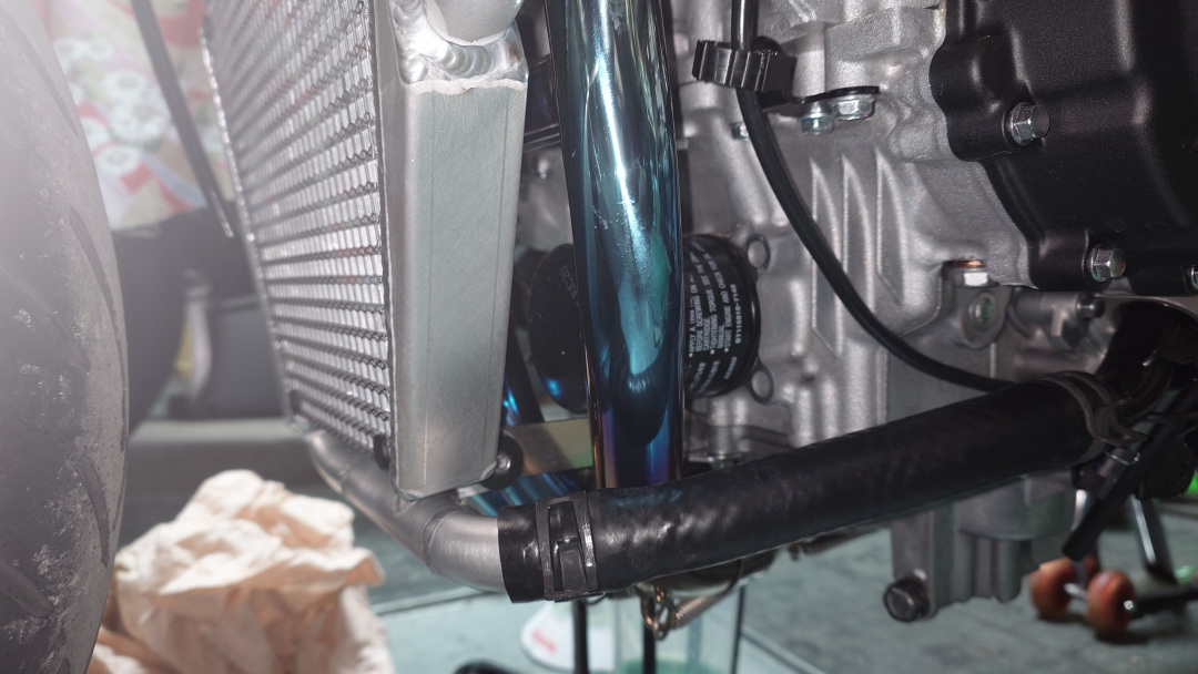 ちなみに600とか1000のラジエター流用も考えたんだけど、どのみち純正エキパイでは装着できなかったと思う。