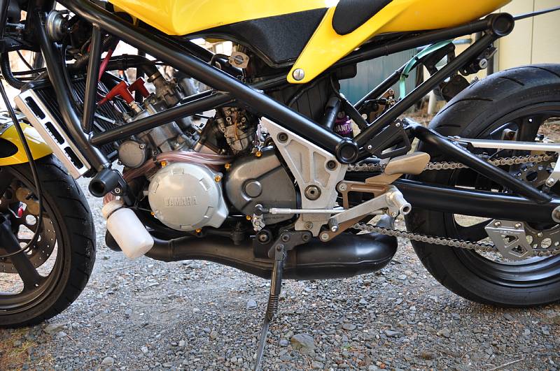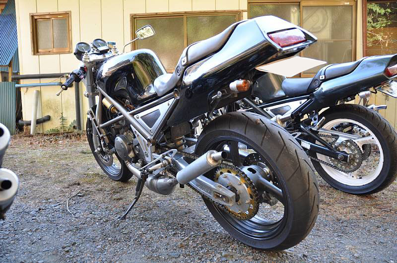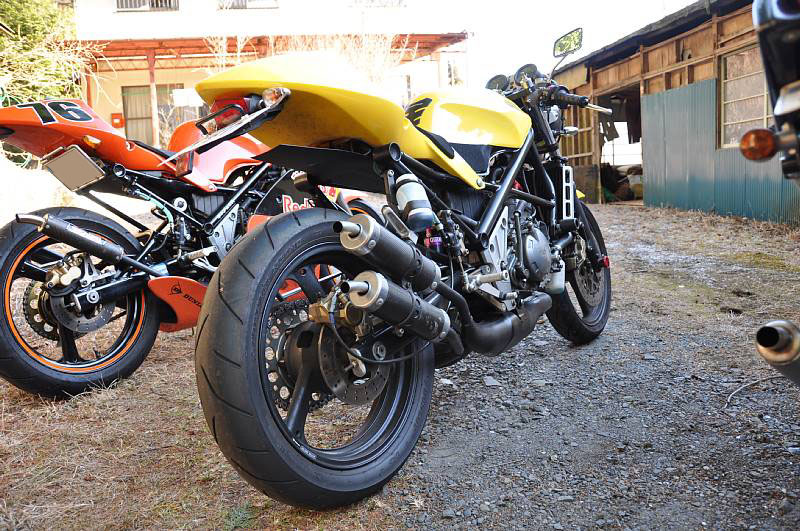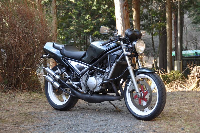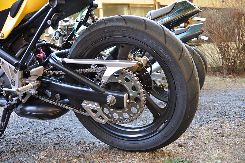 | まるでレトロコンプリートのような団長号♪ レトロって言っても古いって意味じゃなくて、レトロってショップの名前ねw 輪切り溶接跡も美しいステンチャンバーと、R1-Z専用品となるアルミスイングアームが良いね~♪ 余談ですが、オイラや友人☆も過去にレトロステンチャンバー装着してました。 なかなか乗りやすいチャンバーです(*^.^*) フォークも後方排気TZRからの流用とすることで、ホイールサイズも3.0にワイド化。 ちなみにスイングアームはワイドホイール対応で、団長号も3XVのリアホイール流用で4.5にワイド化。 妻子持ちの団長は仕事や家庭が忙しいようでほとんど乗ってません。 なので動態保存しておいてってことでウチで預かってるんだけど、やっぱ自分のバイクが一番カワイイじゃん? つーことで寝かせっぱなし(^-^; たまにはエンジンかけてやらないとな。。。 |