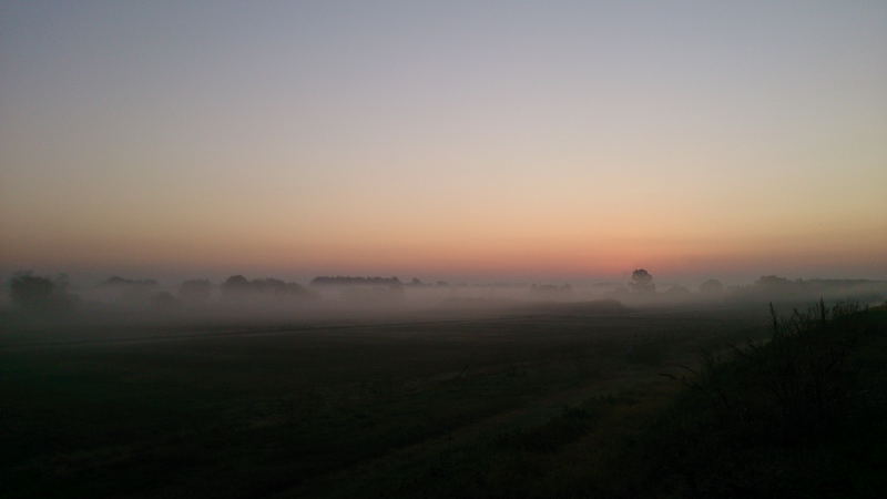 霧が出て幻想的な朝の風景でした。