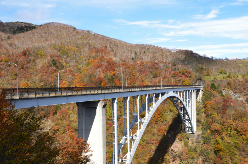 栗山ダムへと続く日陰牧場から六方沢橋を望む。
