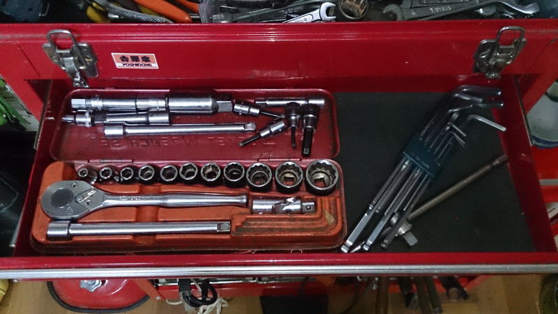 ヘックスレンチはウチの工具箱の中では比較的新しくて3年目くらいかな?