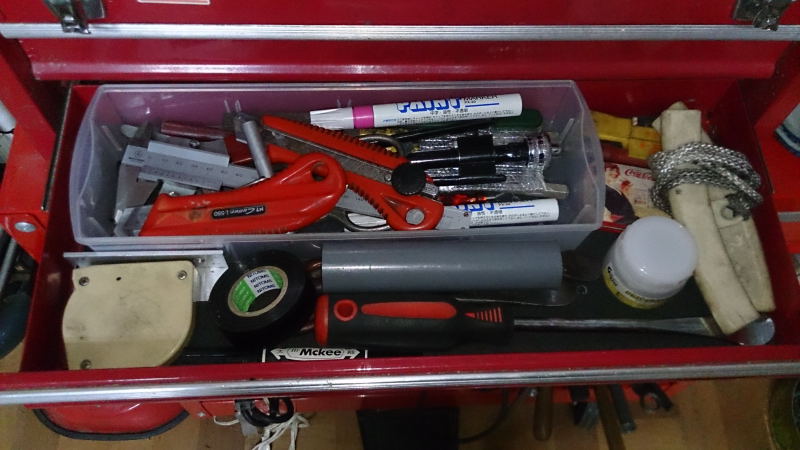 箱が新しくなったので中身を引っ越すことになるわけですが、ここでこれまでのウチの工具箱の中身をちょっと紹介してみようと思います。