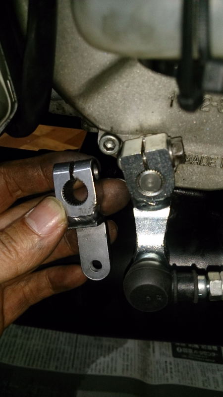 上の写真のパーツも精度が悪いのか、剛性というか強度が足らないのか、シフトシャフトにすっと刺さらないし抜けないし、締め付けてもすぐ緩むし、以前から気に入らなかった部分です。