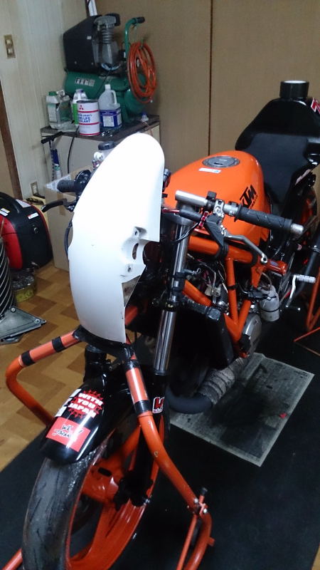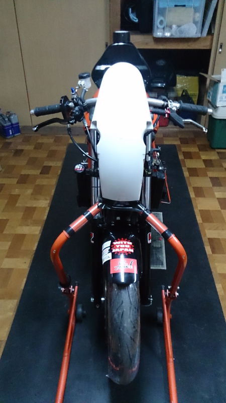 日チャレでのレギュレーションではフルカウルじゃないとダメだけど、SS killers!にはそんなレギュレーションはないので、走りやすさ重視でカウル外してハンドル位置上げてみようかと。
