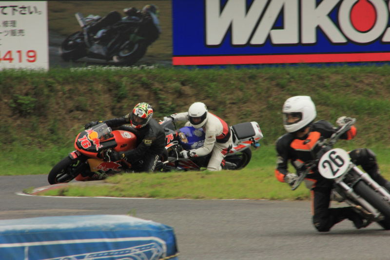 走行中の車両でオイラが一番遅かったと思うけど、その分前に追いついちゃって思ったように走れないってことがないし、450モタレーサーは音うるさいから追いつかれればすぐ気がつくし、よほど気になればライン譲っちゃえばさっさと先行ってくれるし。
