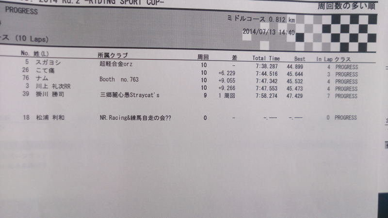 この辺の人は次戦プログレスに上がってくると思うので、台数も増えてにぎやかなレースになることが予想されます。