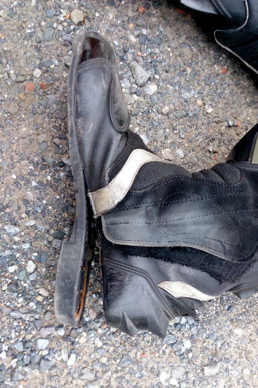 走行前、ブーツのソールが剥がれてるのに気付くorz