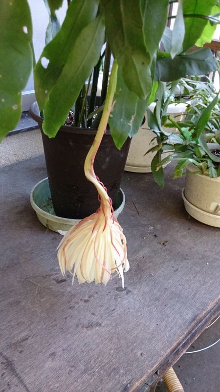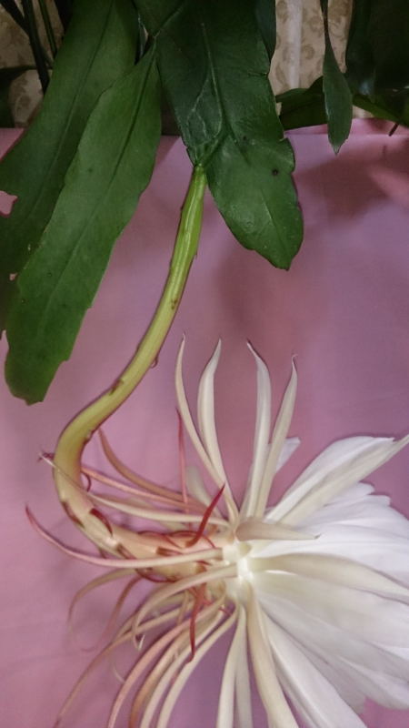 夜ひっそり咲いて翌朝にはもう花が終わってしまいます。