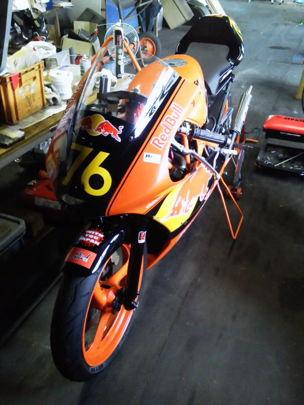 RZワンツーは先日のスポーツ走行時にPDさんが持ち帰ったんですが、ゼッケンはウチにあったりして、当日に多少マシン整備が必要な状態でした。