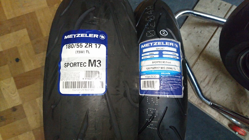 さて、今回タイヤを新品にするにあたっては、リアのサイズを少し変更してみた。