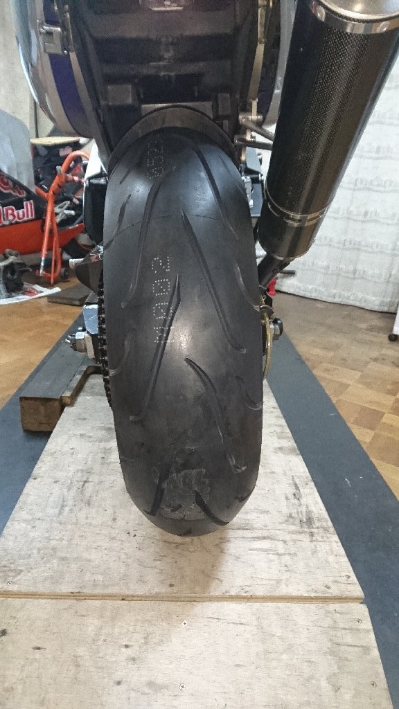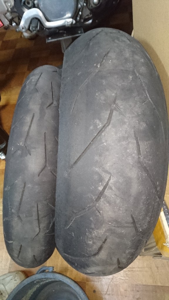9R乗ってた頃は当たり前のように中古タイヤ買って履いてたんだけど、ハンドリングとかグリップとか考えると安物買いの銭失いだったなぁって思う。