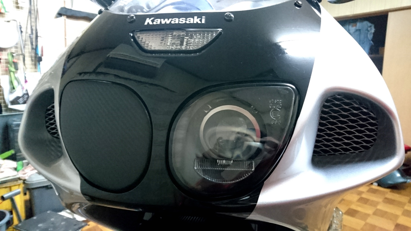 取り付けで悩むかと思ったけど、バッテリーからヘッドライト付近までハーネス這わせて、もともとのライトのカプラーに接続するだけの簡単キットでした。