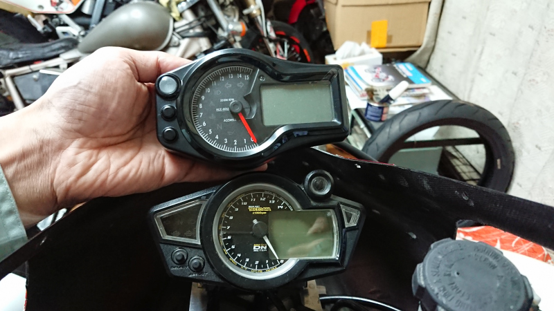 社外のマルチメーターといえばR1-ZにSPタケガワのメーターをつけているので、それとも比べてみた。